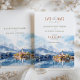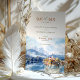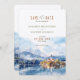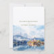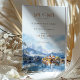 Set the stage for a magical wedding with this "Save the Date" card, featuring a beautiful watercolor illustration of Lake Bled in Slovenia. The design captures the serene beauty of Bled Island with its iconic church, surrounded by reflective lake waters and snow-capped mountains in the background. The card’s color palette blends soft blue and white tones with hints of warm autumnal shades, creating a romantic and tranquil atmosphere. Elegant typography in a mix of modern and script fonts adds sophistication to this charming invitation, perfect for couples planning a picturesque destination wedding.