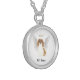 I chose gold plated so that the metal would not react with my skin oils and perspiration. But, I changed the necklace from the gold plated one to a sterling silver. My skin cells will tarnish the silver. But it will not look as bad if some portion of the gold plated necklace somehow became compromised. Zazzle did a find job turning the picture into a pendant for me. As you can see, the colors and the printing of the final product, match the preview. The picture I took is not very clear. But I am pleased with the product I received.