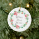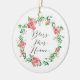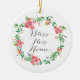 Bless This Home Christmas Ornament with a beautiful floral wreath and calligraphy script
