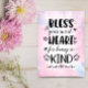 Thank someone for their thoughtfulness with this elegant hand lettering style typography design. Front of card features message "Bless your sweet heart for being so kind." Design appears on digitally textured watercolor background and is accented with heart, bird and floral icons and ornaments. Inside can be customized with your own message. First on the inside left is a cute flower accent with the bible verse message, "The Lord bless you. Numbers 6:24. (can be edited or removed). On inside right the message appears in both pink and black text with butterfly accent, "You are always thoughtful. considerate. gracious. Every Single Time. Thank You!” (text can be edited or remove).