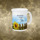 This beautiful porcelain pitcher features a vibrant sunflower and rustic wooden fence design, along with the heartfelt message: “Blessed By The Amazing Grace of God.” A charming and faith-filled accent for your kitchen or dining space—perfect for serving or display.