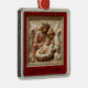This keepsake ornament portrays a tender nativity tableau: two angels in flowing robes, crowned with grace, gazing upon the Holy Child nestled in straw. White roses bloom at the corners, symbols of purity and eternal devotion. The cracked, vintage texture evokes timeless reverence, as though this piece were carried through generations of prayer. Hung upon the tree, it becomes not only decoration but a blessing—an emblem of peace, guardianship, and divine love.