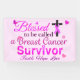 Beautiful breast cancer quote of “Blessed to be called a Breast Cancer Survivor” for breast cancer survivors who have faith in God.