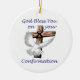 Lightweight, smooth, pure white ornament with nice sheen. Perfect size to be seen from across the room ... and to attract closer inspection! Price was great for ordering enough for the whole family! Clear, bold black design just as requested. Matches the order exactly. Just so nice!