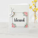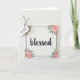 This card features a rectangular white plaque-style design with the word “blessed” centered in flowing black lettering, giving the whole scene a gentle, affectionate tone ❤️. A thin black border runs close to the edges, neatly framing the main word without crowding it. Soft pink roses with layered petals sit in the corners, paired with leafy green stems that curl slightly as if leaning in toward the center. The flowers have a light, brushed look, like watered paint, which adds a tender, cozy feel to the layout. In the upper left, a small white gift tag hangs at an angle from a black string, like a little note tucked in for someone special. The tag reads “GiGi” in small dark lettering, with a tiny pink dot nearby as a sweet accent 🌼. The background stays bright and evenly lit, keeping shadows minimal so the text and floral corners stand out. The roses appear in all four corners, with the fullest blooms at the top right and bottom left.