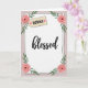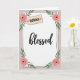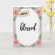 The front design shows a white rectangular panel set over a soft blush-pink background, giving the whole scene a gentle, affectionate tone ❤️. Centered on the panel is the word “blessed” in thick, flowing black lettering that curves like a warm embrace. In each corner, soft pink roses with shaded petals sit among slim green leaves, as if they’re quietly framing a treasured note. Near the upper left, a small light-tan tag hangs from a simple loop, adding a cozy keepsake detail. On the tag, the word “NONNA” appears in dark, plain lettering, with a small pink heart on each side for a sweet touch 🌼. The panel’s outline looks slightly uneven, like it was drawn by hand, which adds to the intimate, caring feel. The roses show layered pink tones with fine petal lines, and the leaves are a fresh emerald green against the pale background.