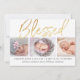 "Blessed" Gold Foil 3 Photo Birth Announcement
