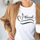 The material is a great quality that is hard to find with most tee shirts. Fabric was not see-through or thin at all, but was also very soft and comfortable. The shirt description states that it runs a little small, so I sized up one size for a perfect fit! I would definitely buy this type of tee shirt again because I love the fit and high quality fabric that I cannot find anywhere else. The printing was perfect and just as pictured. Loved the cute quote and really enjoy the tee in both the quality and design. I love quirky typography designs and funny quotes and I am extremely pleased with the overall quality and value I get at Zazzle!