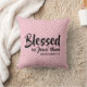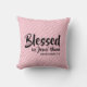 BLESSED IN JESUS' NAME Christian Scripture Pink Throw Pillow