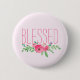 Blessed Pink Watercolor Floral Button