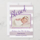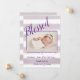 Sweet girly “Blessed” soft pastel purple stripe with newborn photo placement. Add baby name and proud parents and you have an adorable birth announcement to introduce your sweet baby girl. I added a special accent in this design by placing tiny bows to separate date of birth.