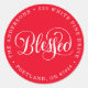 Dress up your holiday envelopes with our Blessed Script holiday return address labels. The festive stickers feature the word Blessed in a white chalk, hand-lettered script with your name and address circling the sticker against a bright red background.