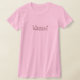 My overall review is that the T-shirt is nice, it fits true to size however the font is significantly smaller than advertised and you can't read it. The printing is unreadable and there is a strain to read it. It does not look like the advertised product. Maybe the shirt color is darker or a larger more visible font should have been used. Photos with and without flash and font is barely legible.