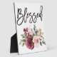 Simple saying blessed quote in modern script with burgundy and coral peony flowers.