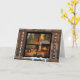 Looking through a frosty window, we see a cozy Yuletide scene. Personalize the inside with your own greeting to send wishes for a blessed winter solstice.