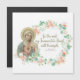 Featuring a beautiful traditional Catholic image of the Blessed Virgin Mary, the Immaculate Heart of Mary with the quote from the Apparition at Fatima, "In the end, My Immaculate Heart will Triumph." The peach eucalyptus flowers add a delightful touch.