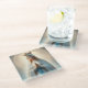 Beautiful Blessed Virgin Mary with gold crown set in a glass coaster. This image of the Virgin Mary has her dressed in white and blue with praying hands, she has a divine halo surrounding her. This coaster can be used for display or give as a gift.