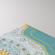 The print is encircled with flowers and a decorative gold and aqua blue border.