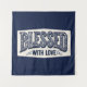 Blessed With Love – Decorative Typography Tapestry (Blue Background)