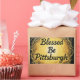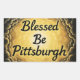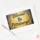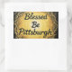 This whimsical sticker features a typography glow golden tunnel of clouds frames the bold black text "Blessed Be Pittsburgh," symbolizing warmth, hope, and pride for the city of Pittsburgh. Finished in an oil paint art print. Get your black & yellow on Yinzers!!!
