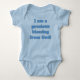 I love this onesie, it's adorable! The material is amazing so soft and the color is a perfect sky blue. When my daughter-in asked me to help with her Baby Shower, I was thrilled. It was co-ed & the theme was Cookie Monster. I had no idea that the whole world was after that big blue Monster. Thank goodness for Zazzle, I got most of the party supplies here. Then I found this onesie! They made my customization so easy. The colors are awesome. I wrote the word "Loved" across the bottom of the Cookie Monster in red letters when I was putting it together. I saw the preview & liked it. But to see it in person, OH, it was fantastic, they do exceptional work! I am so glad that I found this onesie/bodysuit. The production time and shipping were exactly what I was told, which made it easy to plan the party. Packaging was nice as well. If you are looking at this product, look no further, I highly recommend it! I'm certain that I'll be back to "design" whatever my new Grandson "needs.". The printing on the onesie/bodysuit is crisp, and clean. With perfect colors that blend well with the blue background of the basic material. We are so happy with how it came out.