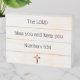My original artwork is featured on this wooden sign, consisting of an artsy style cross bible Scripture from Numbers 6:24. The graphic art cross is styled to complement the meaningful words of blessings from God. These signs are distressed white painted birch wood and easy to hang or stand on a desk or table. This sign has wood slats, but you may choose flat wood option or a larger size as well.