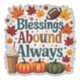 Celebrate the warmth of fall with this cheerful "Blessings Abound Always" design, bursting with cozy seasonal vibes. Surrounded by vivid autumn leaves in shades of crimson, gold, and burnt orange, this playful composition features plaid-patterned typography that radiates rustic charm. The inclusion of pumpkins, a classic football, and a whipped cream-topped fall drink adds a nostalgic and festive touch, perfect for anyone who loves crisp afternoons and pumpkin spice everything. The rich colors and joyful theme make this design ideal for autumn gatherings, Thanksgiving, or simply to embrace the spirit of gratitude. Styled with a modern country flair and playful visual layering, this artwork captures the essence of the fall season in a fun, heartwarming way. AI generated artwork.
