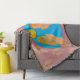 A quality printed throw has its advantages. This is a much finer weave throw than its loopier cousins, and though lighter, it is worth the investment for custom room accessorizing. The back is much prettier than the typical brown, and the fringe on the long sides very vivid, the selvage nicely done. Before photographing, I washed the throw in cold water, delicate, with a thicker woven throw the same size. On tumble dry low, this throw was dry in half the time as the other. This is a very practical quality if you use throws for furniture covers or to wrap up in frequently. The sleekness of the fabric makes it a great layer for accenting or protecting without the feeling of sitting on too much stuff. Perfect for napping or when you feel a light chill coming on. The color printing is beautiful and on this fabric, matched the design and color of my Photoshop image. This is an advantage for blending room fabrics and colors. The fringe on the short sides prints the colors from the design image and therefore varies from the side fringe. I streaked a white fractal line through the plaid pattern to give the illusion of weaving. This printed as crisp as an illusory thread, and put some white in the short side fringe, showing another advantage of print vs loomed- for artistic purposes, line lines, detail, and color integrity can be planned and preserved. My loomed throws have color limitations and more of a needlepoint texture. Print throws reproduce an exact image. The throw felt a little stiff straight out of the package, but this went away in the first delicate wash. Of course I searched the wash water for ink or bleeding and there was none.