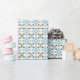 Decorative wrapping paper featuring an original hand-painted geometric floral tile pattern in soft blue, cream, and deep plum tones. Inspired by ornamental tilework and vintage textile motifs, this design adds an artful boutique feel to gifts, stationery, and craft projects. Perfect for birthdays, holidays, bridal gifts, and anyone who appreciates elevated packaging.