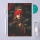 A dramatic dark fantasy and gothic romance portrait featuring a mysterious crowned woman wearing a rich crimson blindfold while surrounded by watchful black ravens. The figure stands against deep shadows and dark velvet drapery, creating a moody and theatrical atmosphere. Her ornate antique crown glows softly against her flowing auburn hair, while the vivid red blindfold introduces a striking focal point that contrasts beautifully with the dark feathers of the ravens gathered around her. The birds appear protective, inquisitive, and symbolic, enhancing the sense of mystery and folklore. The composition evokes themes of prophecy, intuition, hidden sight, and mythical storytelling, blending gothic elegance with fantasy symbolism. The dramatic lighting and rich textures create a hauntingly beautiful portrait that works wonderfully for dark fantasy decoupage projects, mixed media art, journals, and statement craft pieces. Artwork similar to a dramatic romantic oil painting with dark fantasy and gothic portrait influences……PERFECT FOR: Decoupage furniture upcycling, gothic themed craft projects, mixed media art, fantasy journals, dark academia decor, handmade gifts, statement wall art, collage art, fantasy themed crafts, Halloween decor, gothic romance projects....….. 🖤 NOTE 1. This design is available in two options: Left and Right. You can find them in the Collection shown below. If they don’t appear there, try searching for their unique identifiers: FC5L for the Left design and FC5R for the Right version….🖤 NOTE 2. The 18 lb tissue is a great choice if you like a little extra strength—it's easier to handle, resists tearing and allows for gentle repositioning. It’s also more opaque, making it perfect for darker surfaces. The 10 lb tissue is wonderfully lightweight and flexible giving you that smooth, blended finish. It’s ideal for layering on furniture or smaller projects so treat it gently and it will reward you with stunning results!.….🖤 NOTE 3. All items with this particular design share my unique identifying “Letter/s Number/s” label in the title for easy searching. …..🖤