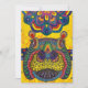 An extremely vibrant multicolored hippo set against brilliant yellow background.