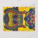 A bright, happy, multicolored hippo set against a sunny yellow background.
