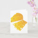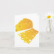 Cheese comes in all sorts of shapes and flavors. This design is a block of cheese in a triangle shaped wedge. The cheese has two slices lying flat next to the block. The cheese has holes in it like swiss cheese. This block of cheese design looks great on these note cards