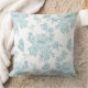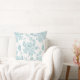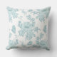 Hand drawn block print with 2 shades of aqua depicting nature in bloom.