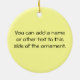 Lightweight, smooth, pure white ornament with nice sheen. Perfect size to be seen from across the room ... and to attract closer inspection! Price was great for ordering enough for the whole family! Clear, bold black design just as requested. Matches the order exactly. Just so nice!