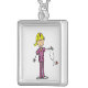 Blond Female Stick Figure Nurse T-shirts Silver Plated Necklace