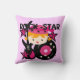 Your little rock star will love this pretty in pink Blond Girl Rock Star pillow featuring a girl in a skull cap of pink with stars, a guitar, and record album!