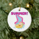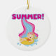 A cute design for summer, features a blond haired girl in bathing suit and ring coming down the water slide and hot pink and blue text that reads SUMMER! Summer T-shirts, bodysuits, bibs, mugs, cards, bags, stickers, keepsakes, pillows, and much more.