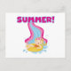 A cute design for summer, features a blond haired girl in bathing suit and ring coming down the water slide and hot pink and blue text that reads SUMMER! Summer T-shirts, bodysuits, bibs, mugs, cards, bags, stickers, keepsakes, pillows, and much more.