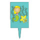 A smiling blond haired mermaid underwater with the seaweed and yellow starfish, a cute ocean theme design for girls who love mermaids. Mermaid T-shirts, bodysuits, bibs, blankets, burp cloths, magnets, cards, bags, stickers, key chains, mousepads, pillows, wall clocks, keepsakes, and much more!