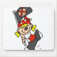 A blond pirate boy with a flag, a cute pirate design for kids who love pirates!