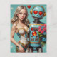Blond Woman and a Robot Found Love Postcard