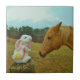 Blond Yellow horse & Easter Bunny Ceramic Tile