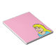 This Blonde Bombshell Comic Strip Notepad features a comic style drawing of a beautiful, blonde girl on a pink background. She has a button nose, full pink lips and the brightest of smiles. Her eyes are closed, probably due to the weight of her lush, black lashes. She has a thick fringe of bangs and flowing yellow hair that extends past her shoulders. Her aqua shirt is barely visible at the bottom of the design. She looks as if she doesn't have a care in the world. And, really, she shouldn't have a care in the world. After all, she is a cartoon.