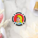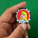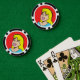 This Blonde Bombshell Comic Strip Poker Chip features a comic style drawing of a beautiful, blonde girl on a red background. She has a button nose, full pink lips and the brightest of smiles. Her eyes are closed, probably due to the weight of her lush, black lashes. She has a thick fringe of bangs and flowing yellow hair that extends past her shoulders. Her aqua shirt is barely visible at the bottom of the design. She looks as if she doesn't have a care in the world. And, really, she shouldn't have a care in the world. After all, she is a cartoon.