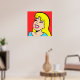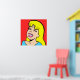 This Blonde Bombshell Comic Strip Poster features a comic style drawing of a beautiful, blonde girl on a red background. She has a button nose, full pink lips and the brightest of smiles. Her eyes are closed, probably due to the weight of her lush, black lashes. She has a thick fringe of bangs and flowing yellow hair that extends past her shoulders. Her aqua shirt is barely visible at the bottom of the design. She looks as if she doesn't have a care in the world. And, really, she shouldn't have a care in the world. After all, she is a cartoon.