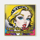 Add a touch of vintage fun with this pop art design featuring a blonde bombshell with humorous text. Perfect for adding a playful twist to your decor.