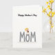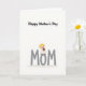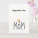 This card features a bright white background with a simple layout that feels calm and affectionate ❤️. Across the lower half, large gray sans-serif letters spell “MOM,” giving the design a steady base. Sitting on the left side of the first “M” is a small child figure with light blond hair, a white dress, and wide eyes that suggest a sweet, trusting bond. The child’s gentle smile and relaxed posture add a soft note of closeness, like a quiet moment shared with a favorite person. In the child’s hands is a small brown plush toy, tucked in like a comforting companion. Near the top, the phrase “Happy Mother’s Day” appears in black serif lettering, centered and spaced neatly above the main word. The colors stay minimal—white, gray, and black—warmed by the blond hair and brown toy, with a tiny touch of 🌼. The child is perched above the first letter while the toy rests against the child’s chest, and the text sits clearly above the scene.