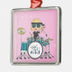 Blonde Drummer Girl with Stars on Pink Metal Ornament