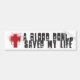 Red cross with blood and dark gray text that reads A Blood Donor Saved My Life.